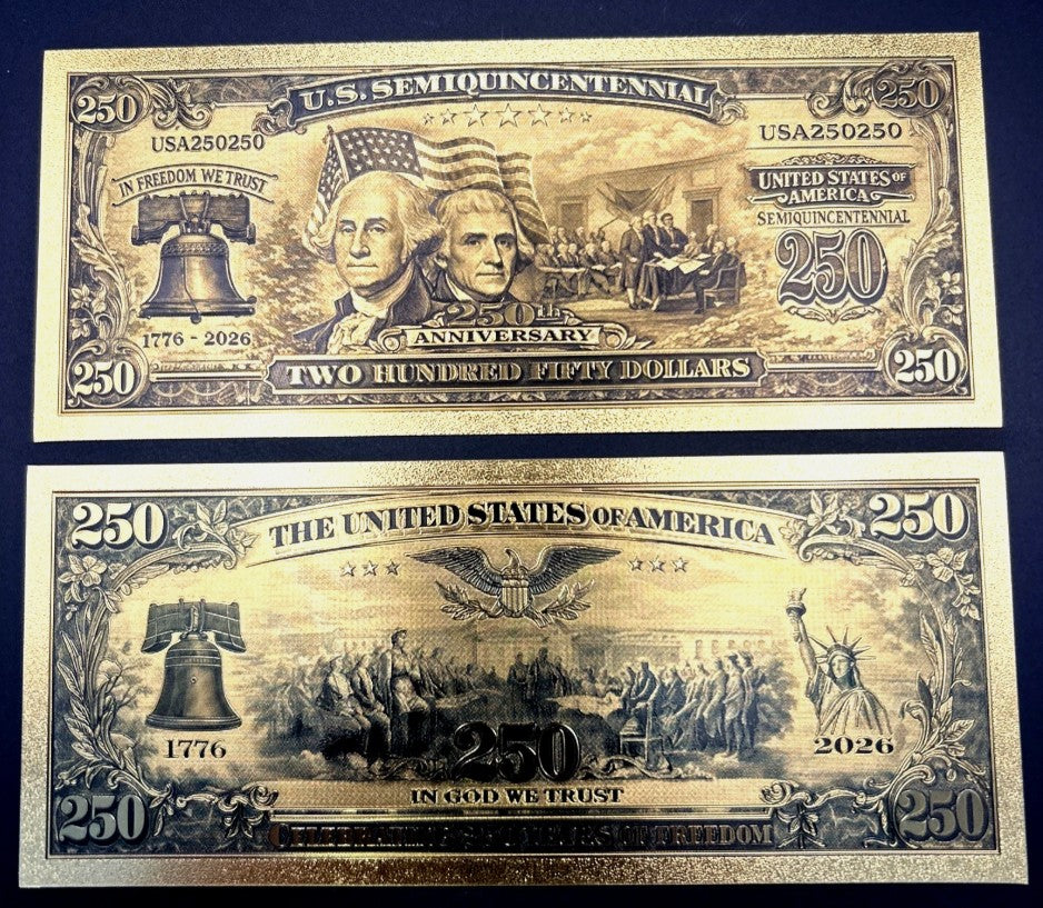 24K GOLD PLATED COLLECTIBLE USA 250TH ANNIVERSARY BANKNOTES