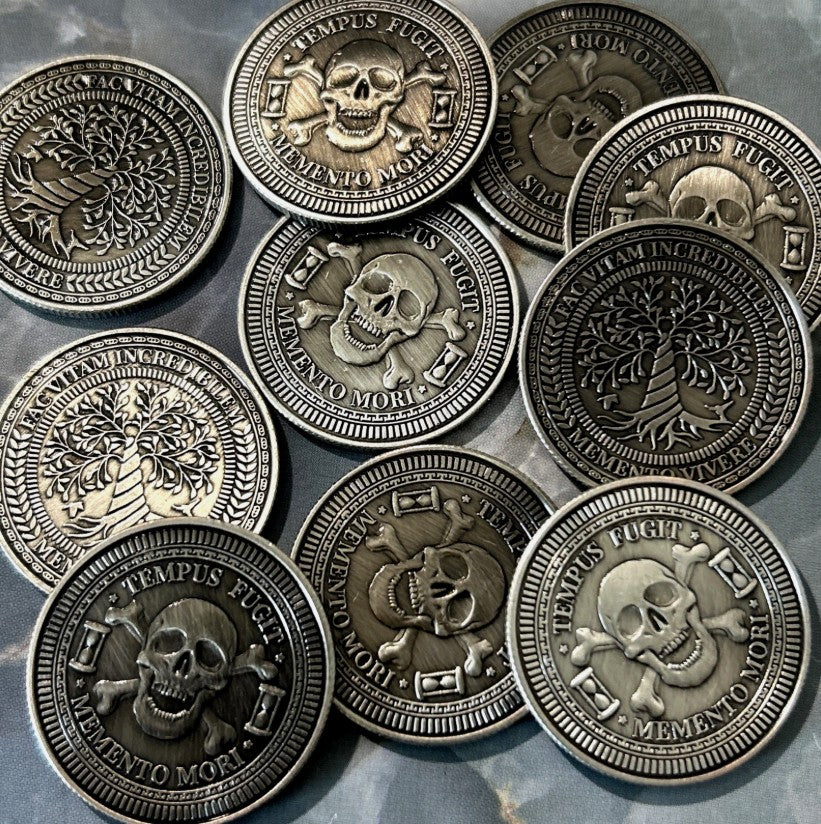 VIEW ON EBAYMemento Mori - Tempus Fugit Skull Lucky Pocket Piece Coin (1 PC)