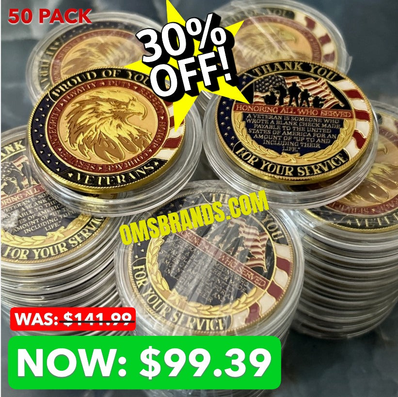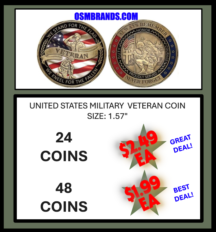 OR VIEW DETAILS HERE#DailyDeals on OSM Brands! 25 or 50 Veteran coin packs!