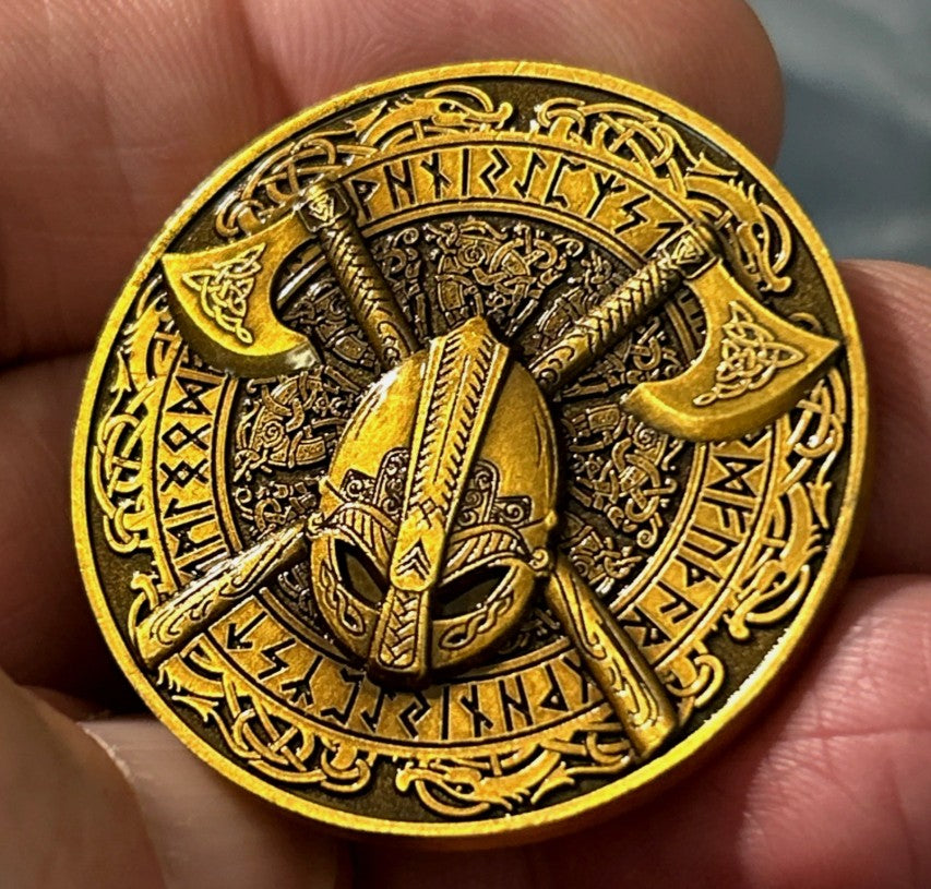 Incredible NEW NORSE Viking Double Axes 3D Vegvisir Compass Token Coin